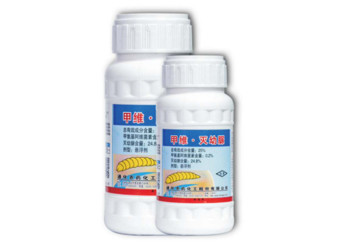 本品由甲氨基阿維菌素苯甲酸鹽與滅幼脲復(fù)配而成。甲氨基阿維菌素苯甲酸鹽作用機(jī)理是擾亂害蟲神經(jīng)傳導(dǎo)而使身體麻痹死亡。滅幼脲為苯甲酰脲類昆蟲幾丁質(zhì)合成抑制劑,通過抑制昆蟲幾丁質(zhì)的合成從而導(dǎo)致昆蟲不能正常蛻皮而死。以胃毒為主兼觸殺作用,可用于防治甘藍(lán)小菜蛾和楊樹美國白蛾。本品外觀為乳白色懸浮液體,無刺激性氣味。