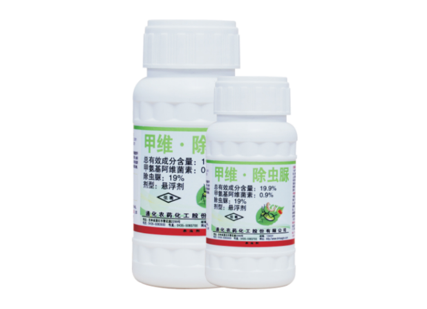 本品由甲氨基阿維菌素苯甲酸鹽與除蟲脲復(fù)配而成。甲氨基阿維菌素苯甲酸鹽作用機(jī)理是擾亂害蟲神經(jīng)傳導(dǎo)而使身體麻痹死亡。除蟲脲具有胃毒、觸殺及兼具殺卵作用,能抑制昆蟲表皮幾丁質(zhì)的合成,使幼蟲在蛻皮時(shí)不能形成新表皮而死。以胃毒為主兼觸殺作用,可用于防治蘋果金紋細(xì)蛾和楊樹美國白蛾。本品外觀為類白色懸浮液體,無刺激性氣味。